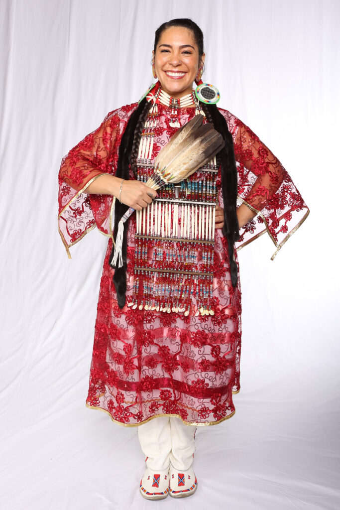 Autour de toi : des regalia flamboyants, des plumes, des tambours sacrés. Au-dessus de toi : un gratte-ciel en forme de guitare. C’est comme si le passé et le présent jouaient ensemble un mashup de cultures en live.
