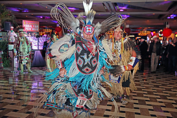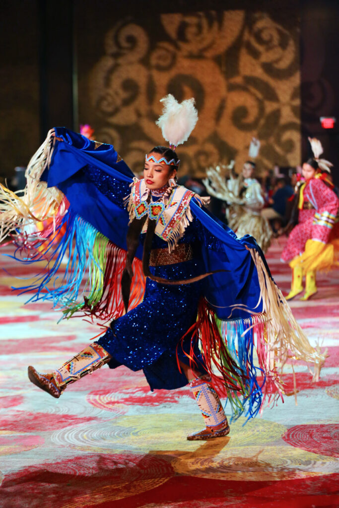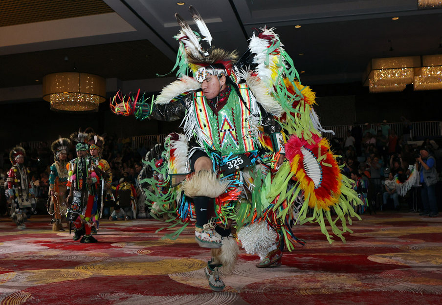 Ce qui rend ce pow wow unique, c’est justement son cadre surréaliste : l’arène de danse se situe au cœur d’un complexe Hard Rock, entre casino, restaurants, scènes de concert, palmiers éclairés et suites de luxe.